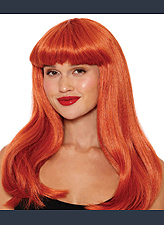 Daphne Long Wig Adjustable long straight wig with bangs and a built-in fishnet cap. • Wig :100% PVC • Net: 100% Polyester O/S ~ AUBURN ~ AS SHOWN IN PICTURE