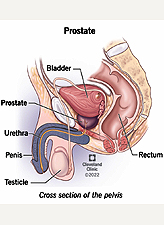 Where is the male G-spot located? The prostate is inside the body, between the base of the penis and the rectum, which is the passage that leads to the anus. It sits just beneath the bladder and surrounds the urethra. As people get older, their prostate may increase in size.