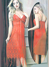 GREAT QUALITY FOR A GREAT PRICE $39.99 Lace CHEMISE with FRINGED ACCENT Includes Matching Thong ~ Stretch Soft Lace COLOR: Coral SIZE: One Size